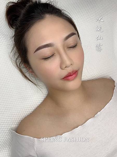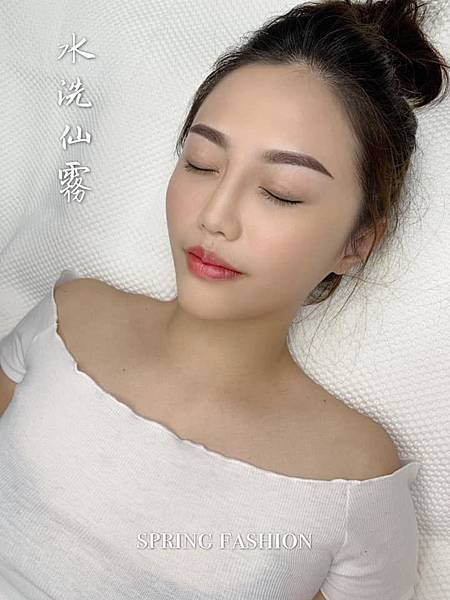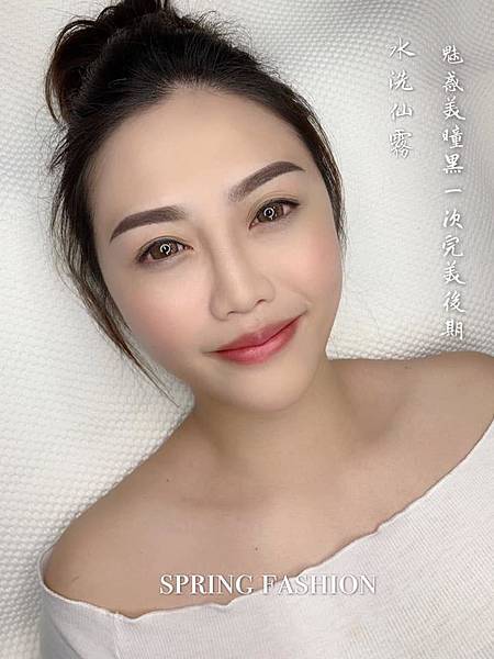 美女以前的舊眉型經過春天的設計和「水洗仙霧」的操作之下,自然並且讓臉看起來更柔美優雅,另外眼睛不愛上眼妝的她,選擇春天做了「魅惑美瞳黑眼線」,一次上色的留色效果讓她非常滿意!