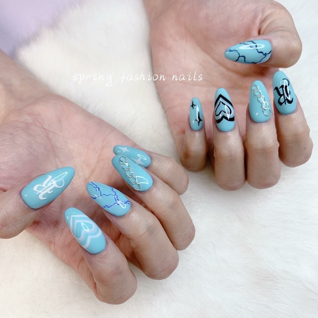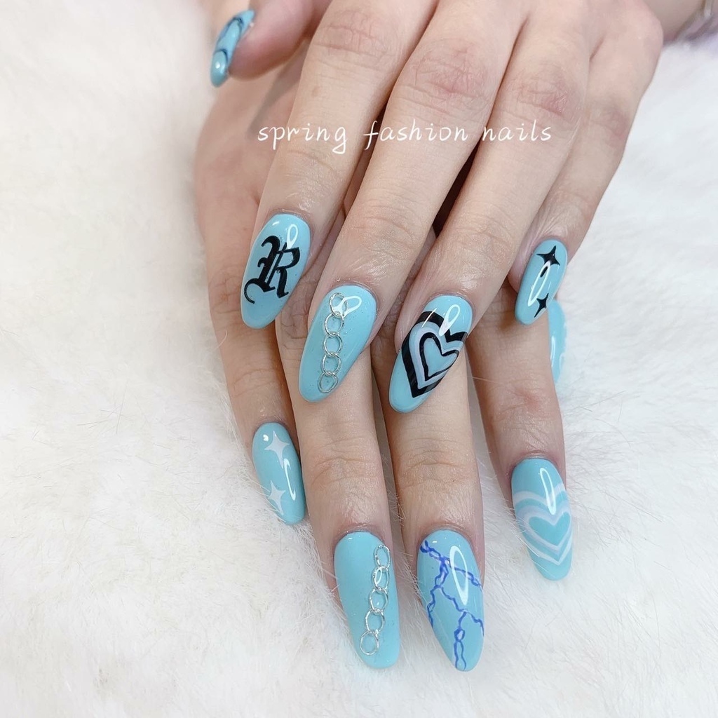 搶眼的藍色美甲~左右手作不同色調搭配也很可以