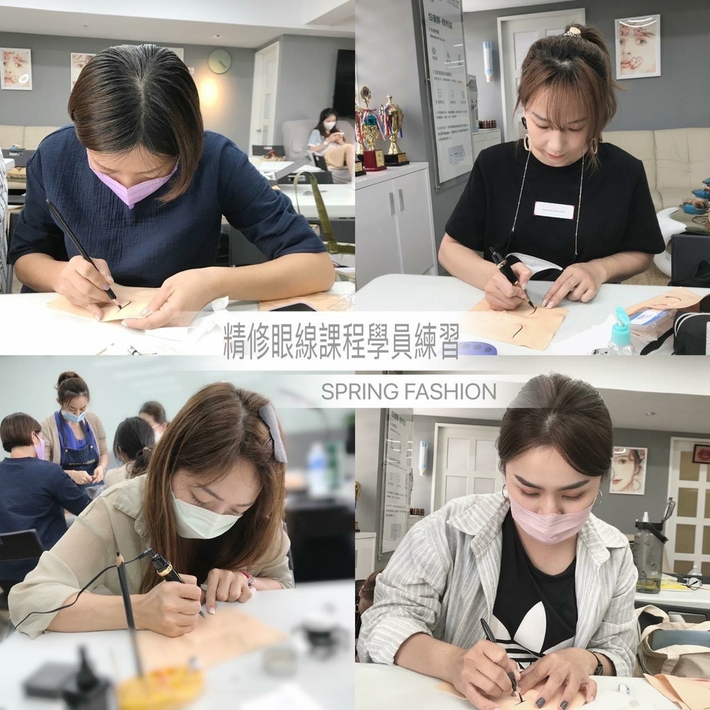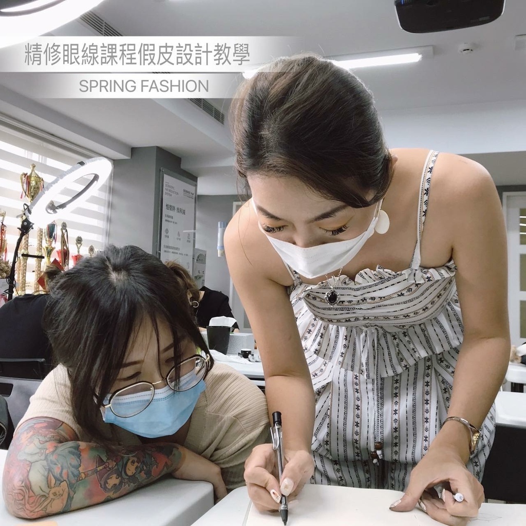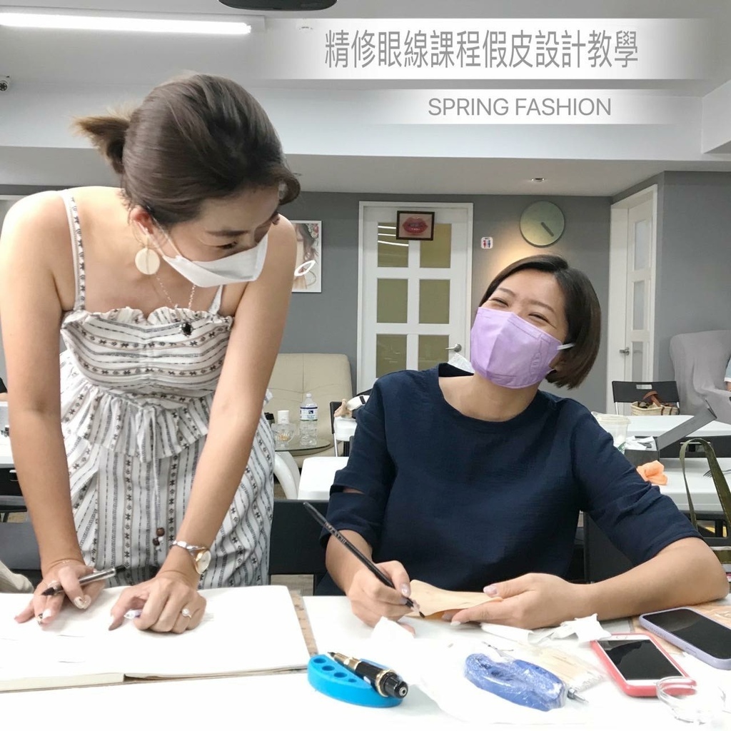 Conny老師的示範教導下,舊生已經可以完美呈現漂亮的眼線型態和針法、新同學也從紙圖開始練習到可以刷起假皮