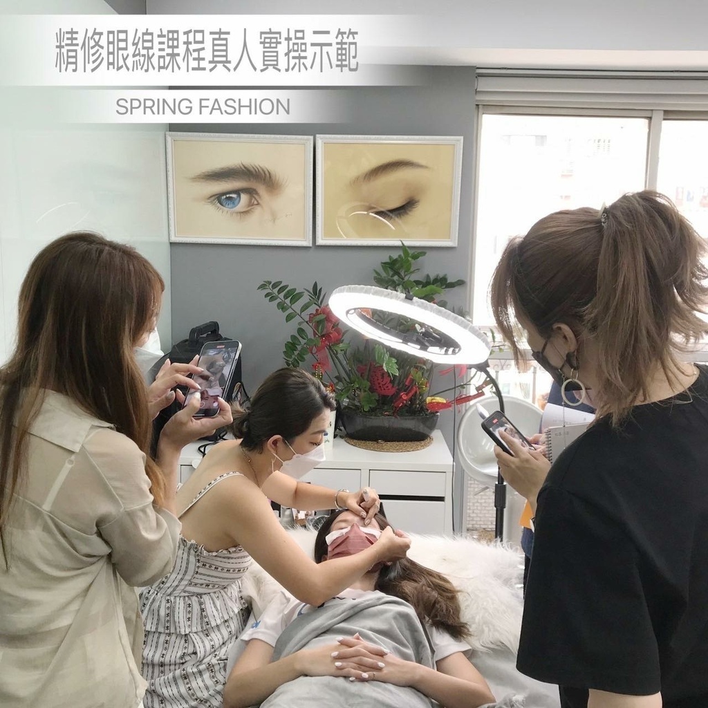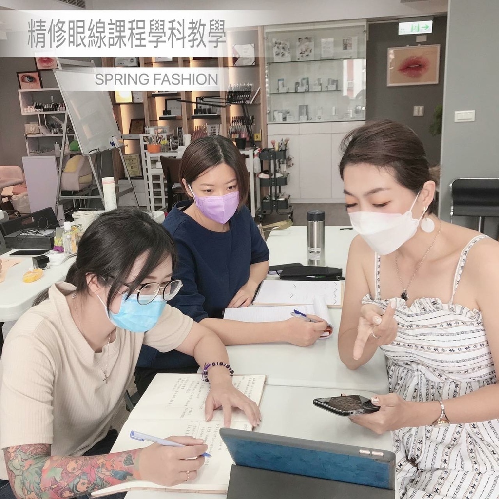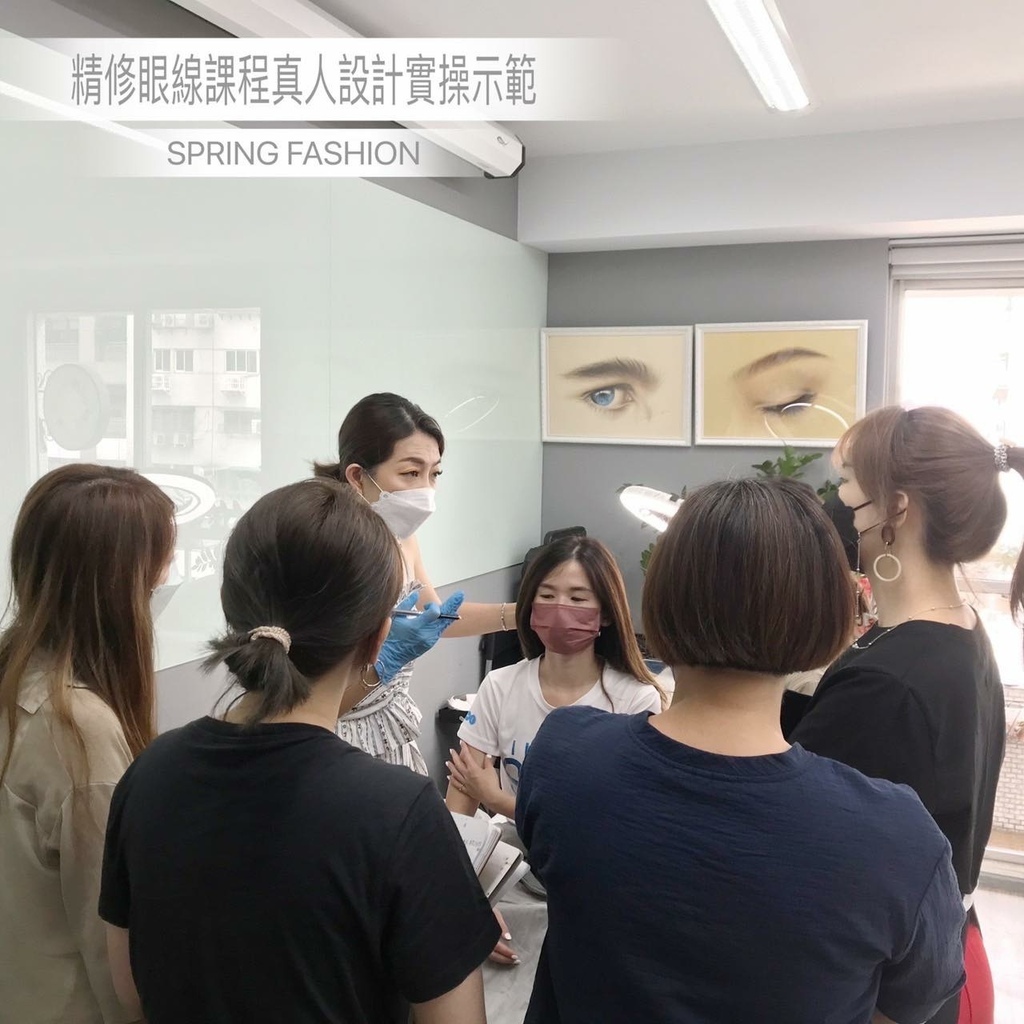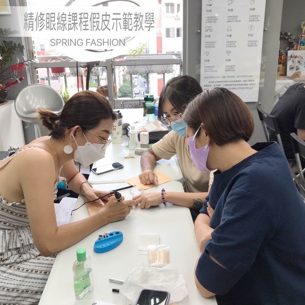 Conny老師的示範教導下,舊生已經可以完美呈現漂亮的眼線型態和針法、新同學也從紙圖開始練習到可以刷起假皮