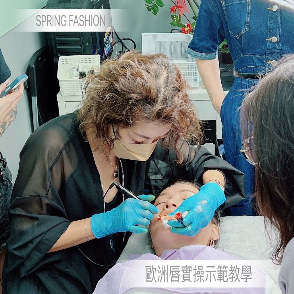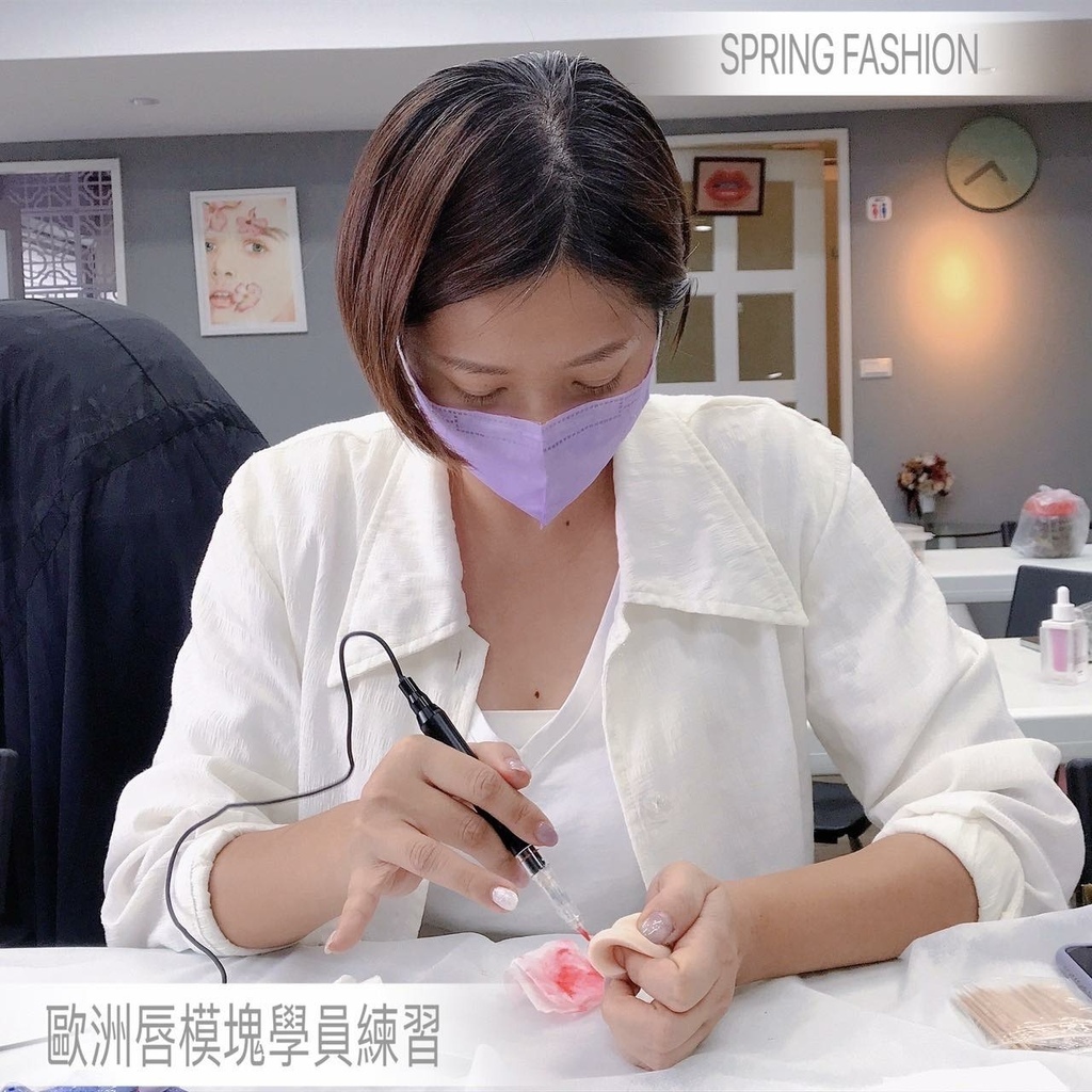 Conny老師示範真人操作、學科理論、還有帶領同學們刷起5D唇模塊(超級仿真)