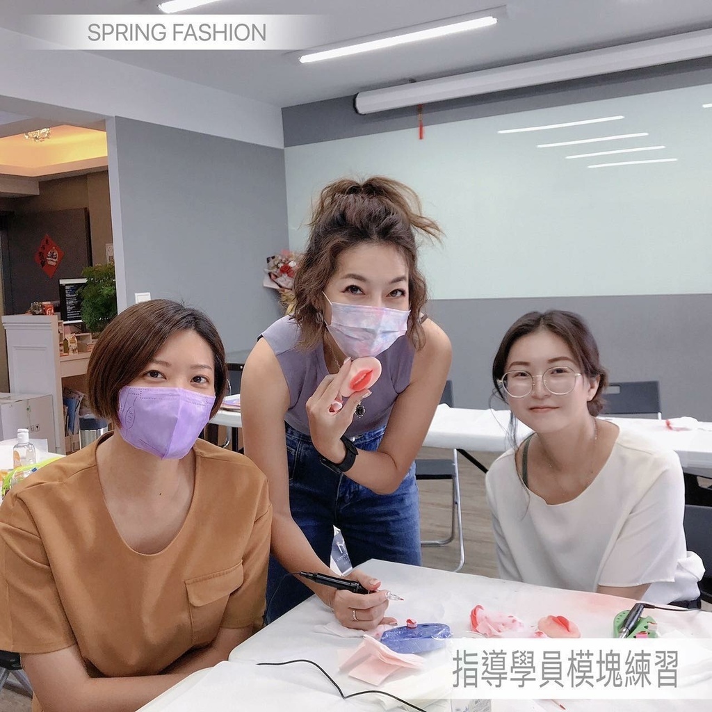 春天的眼線和唇課程是連續三天一起上課,第三天「學員考核日」,學生可安排麻豆實操真人,或是繼續在學員練習~